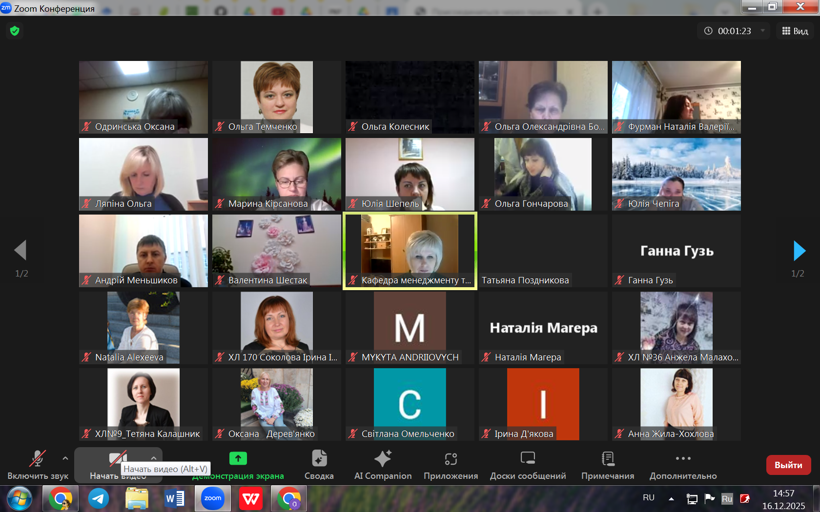12 травня друга група слухачів розпочала науково-педагогічне стажування на кафедрі менеджменту та економіки ХНПУ імені Г. С. Сковороди за темою «Менеджмент освітніх організацій». Організатори привітали своїх колег, науково-педагогічних працівників, які представляють різні виші України (Харків, Одеса, Дніпро), із початком стажування та побажали продуктивної співпраці. Програмою підвищення кваліфікації передбачено 5 вебінарів. Так, перша зустріч, що відбулася 15 травня, була присвячена питанням наукових засад управління (професор Олександра МАРМАЗА) та інформаційному забезпеченню управління закладом освіти (доцент Олена ГРЕЧАНИК). Дякуємо ЗСУ за можливість працювати та проводити наукові дослідження!