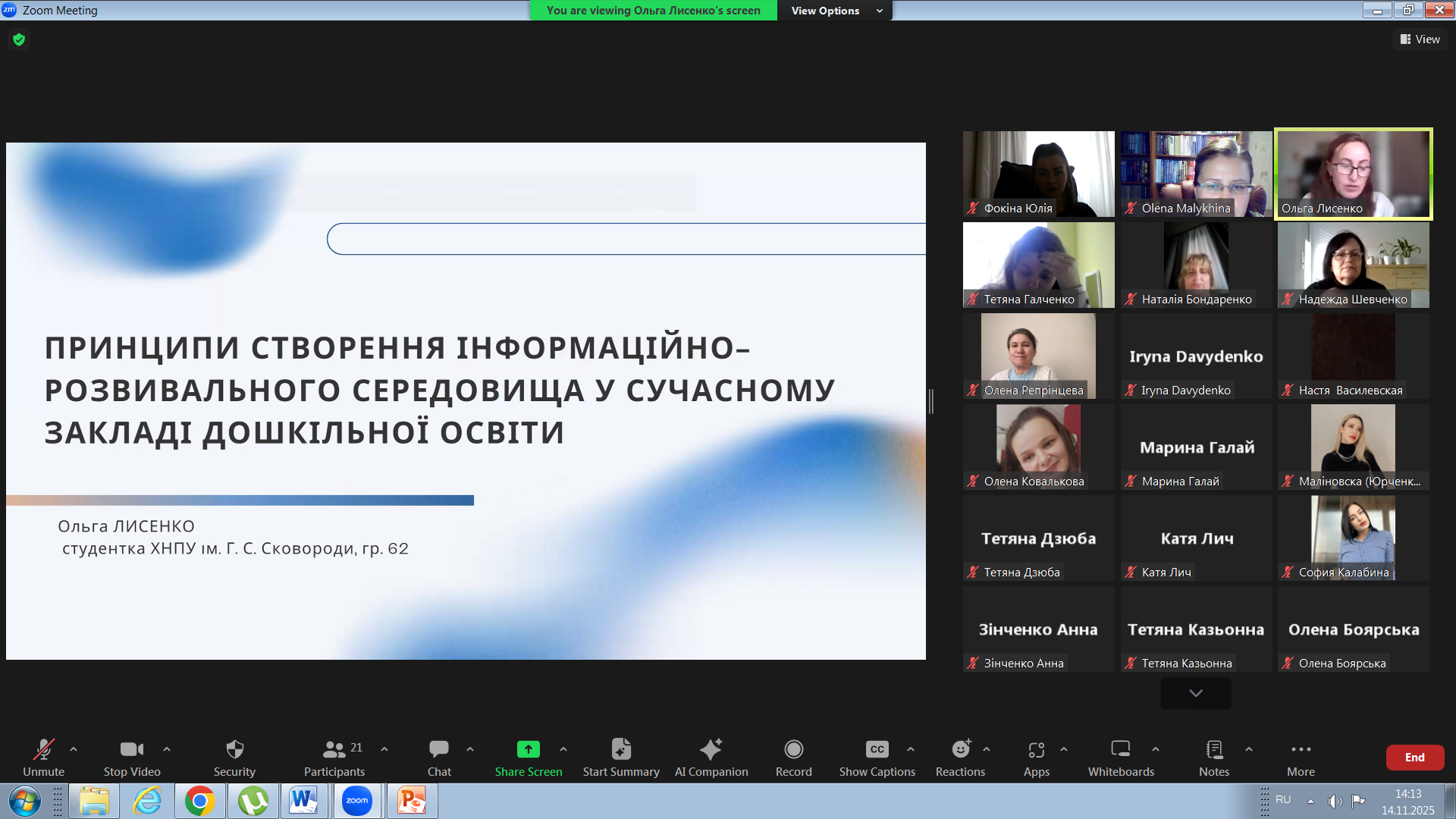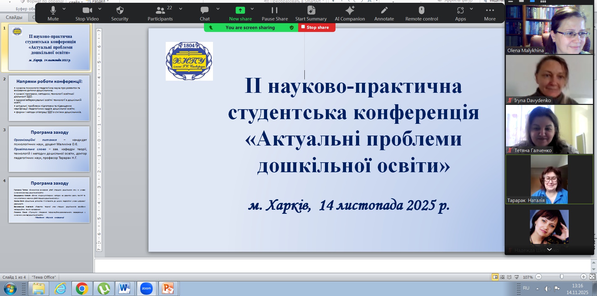 15 квітня 2023 року в рамках викладання блоку дисциплін вільного вибору «Образотворче мистецтво» відбулось відкрите практичне онлайн-заняття з дисципліни «Дитяча іграшка» доцента кафедри теорії, технологій і методик дошкільної освіти ХНПУ імені Г.С. Сковороди Давидової Марини Олександрівни. На відкритому занятті були присутні керівник навчального відділу університету Ворона С. А., декан факультету дошкільної освіти, доктор педагогічних наук, професор Танько Т. П., завідувач кафедри теорії, технологій і методик дошкільної освіти, доктор педагогічних наук, професор Тарарак Н. Г., доцент кафедри Шевченко Н. О., ст. викладач Доля Ю. В. Слухачі – здобувачі першого (бакалаврського) рівня вищої освіти третього року навчання (32 група) спеціалізації «Дошкільна освіта. Образотворче мистецтво» денної форми здобуття освіти.