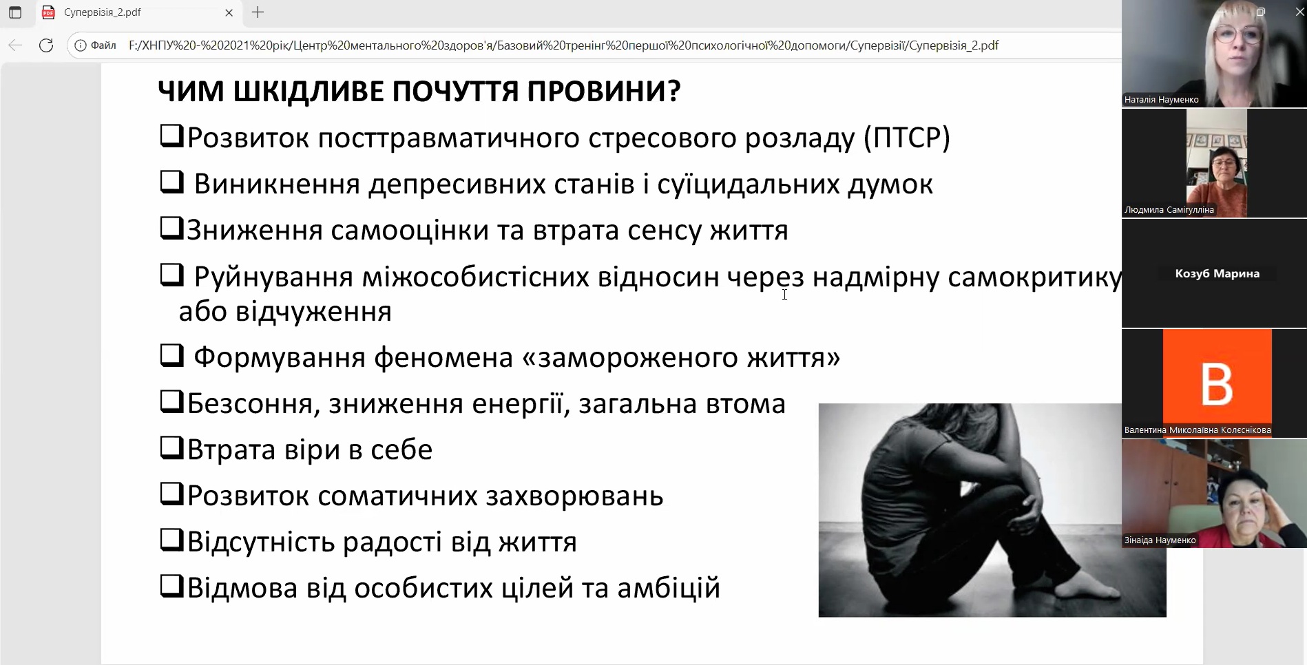 Темою другої супервізії було «Почуття провини як чинник емоційного вигорання», в межах якої розглядалися питання:
