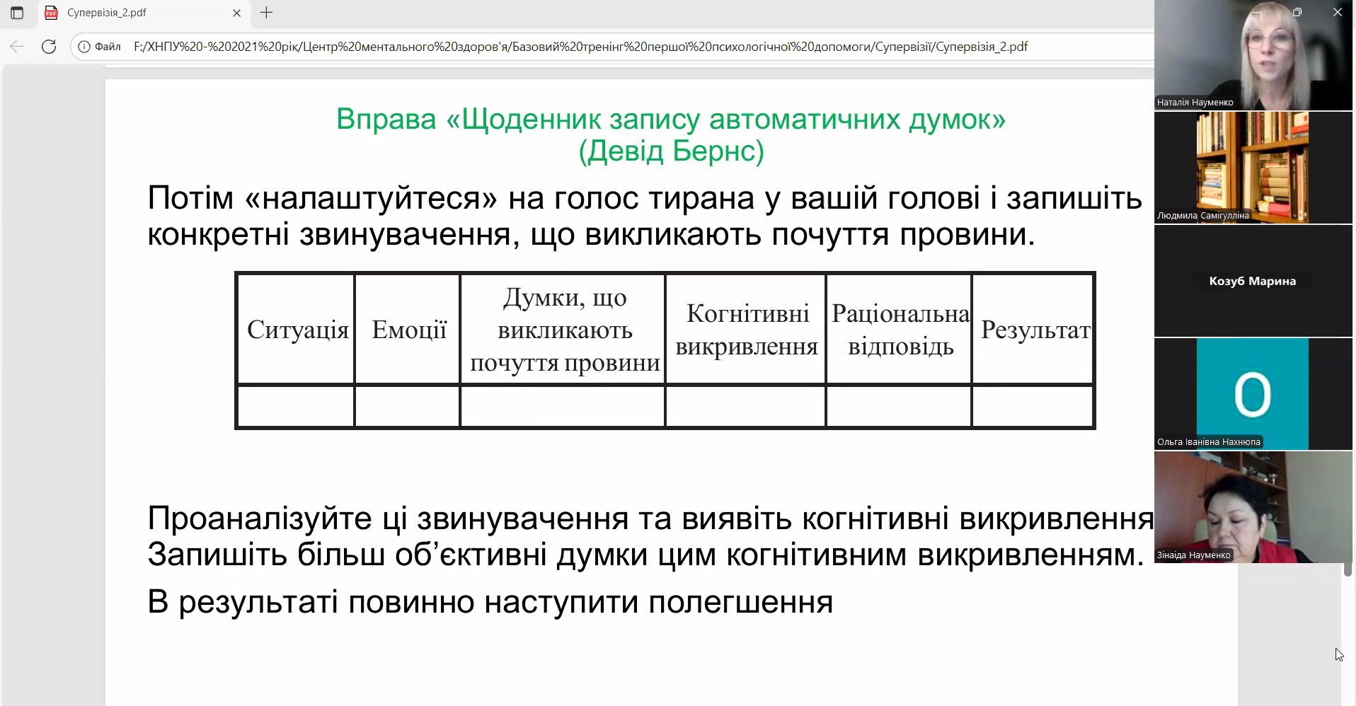 • Вправа «Щоденник запису автоматичних думок» (Девід Бернс)