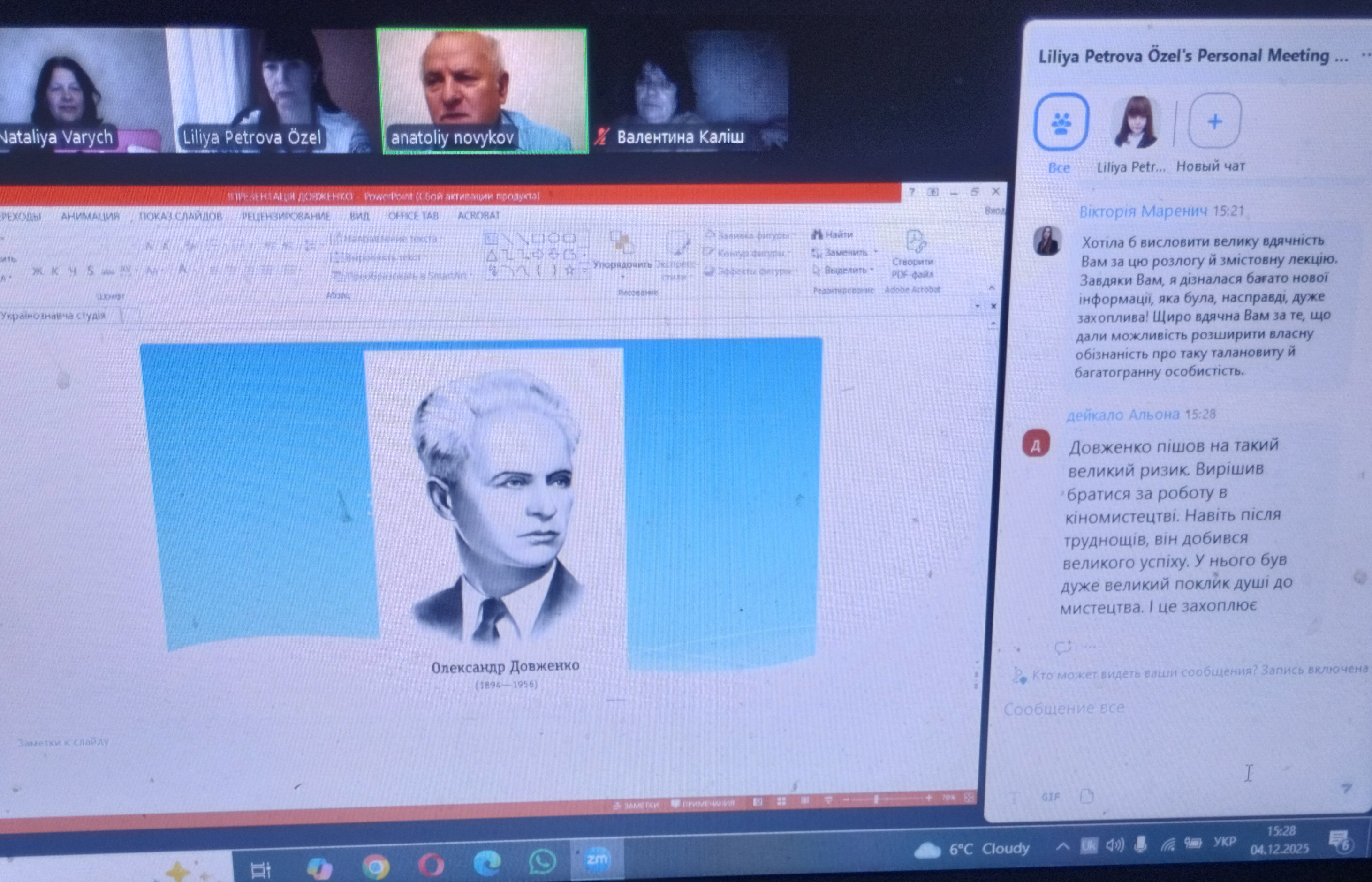 Українознавці нашої студії підійшли до сесії з невситимим бажанням інтелектуальних пошуків, наснажливих зустрічей. 04 грудня 2025 року їхню спрагу нового почасти погамував доктор філологічних наук, професор кафедри української мови, літератури та методики навчання Глухівського національного педагогічного університету імені Олександра Довженка, автор низки праць про життя й діяльність видатного українського діяча Анатолій Новиков у гостьовій лекції «Відомий і невідомий Довженко».