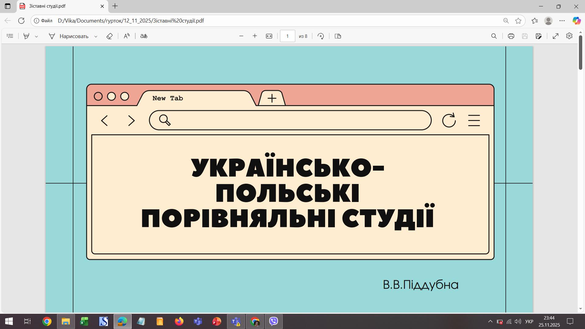 У межах Тижня науки 8 листопада 2023 року відбулося чергове засідання Українознавчої наукової студії, впродовж якого відбувалося жваве обговорення актуальної теми – «МІЖКУЛЬТУРНА КОМУНІКАЦІЯ У ЗЛАМНІ ЧАСИ», де у формі зіставлень, проведення паралелей, а також дискусій і вільного висловлення думок розглядалися проблеми репрезентації української духовної й матеріальної культури у світовому просторі, подолання «чужинності» в міжкультурній комунікації, специфіки краєзнавчого і країнознавчого дискурсу в сучасній гуманітаристиці.