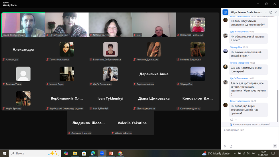 Зустріч пройшла активно й пізнавально, наочно й з гумором, що особливо сподобалося учасникам, які засвідчили цікавість до гончарства як популярного українського ремесла і майстерності пана Сергія значною кількістю запитань, побажань, коментарів, висловили сподівання на продовження зустрічей у форматі краєзнавчих мандрівок – онлайн-мостів із Тернопіллям, а також іншими краями та їх майстрами для більш повного й детального вивчення культурної спадщини й сьогодення української національної культури.