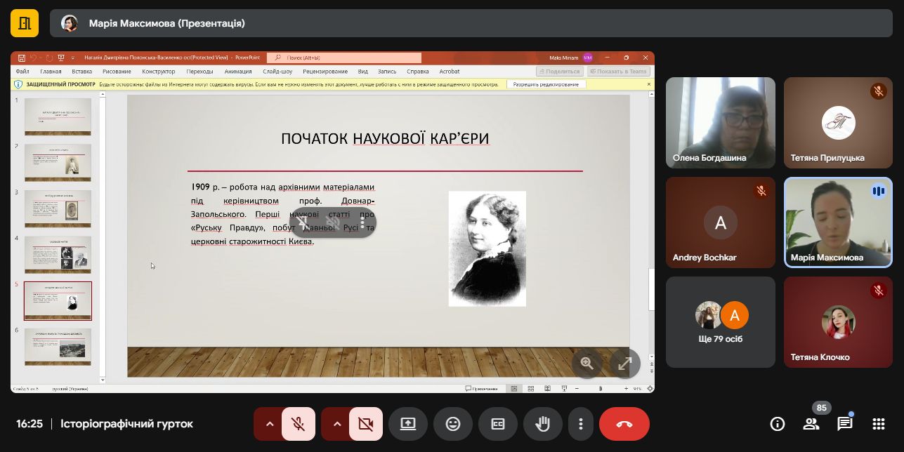 Друге засідання історіографічного гуртка у цьому навчальному році було присвячене долі відомих українських історикинь кінця XIX - 30х рр. XIX ст.