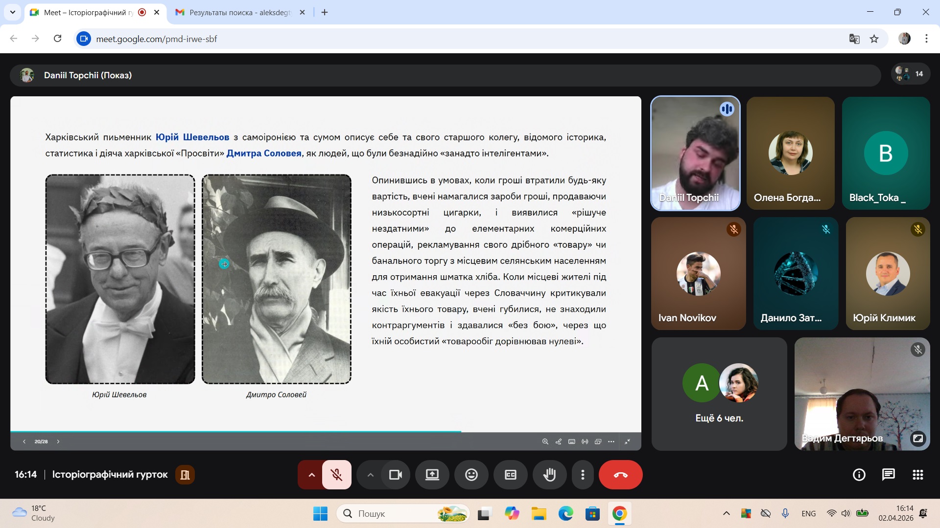 Аспірант 3 курсу Данііл ТОПЧІЙ проаналізував повсякденне життя київських та харківських істориків у роки Другої світової війни, показав екзистенційну кризу вчених через призму побутових злиднів, моральних компромісів та ідеологічних розколів.