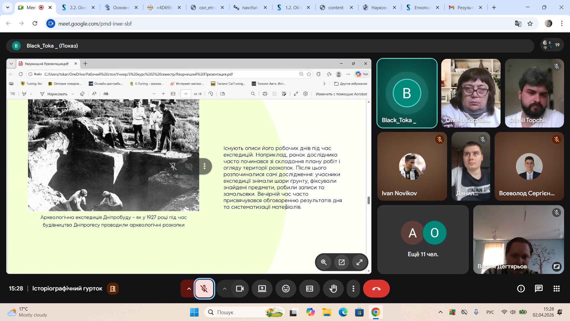 Аспірант 3 курсу Олег ТОКАРЄВ свій виступ присвятив впливу археологічних зацікавлень Д. І. Яворницького на його приватне життя, викладацьку та музейну кар’єру, тематику наукових праць.