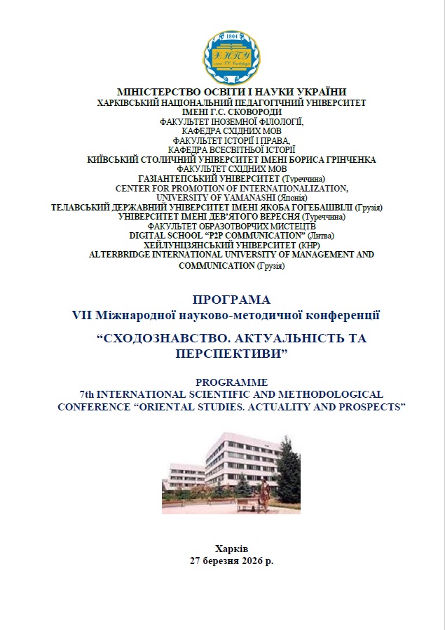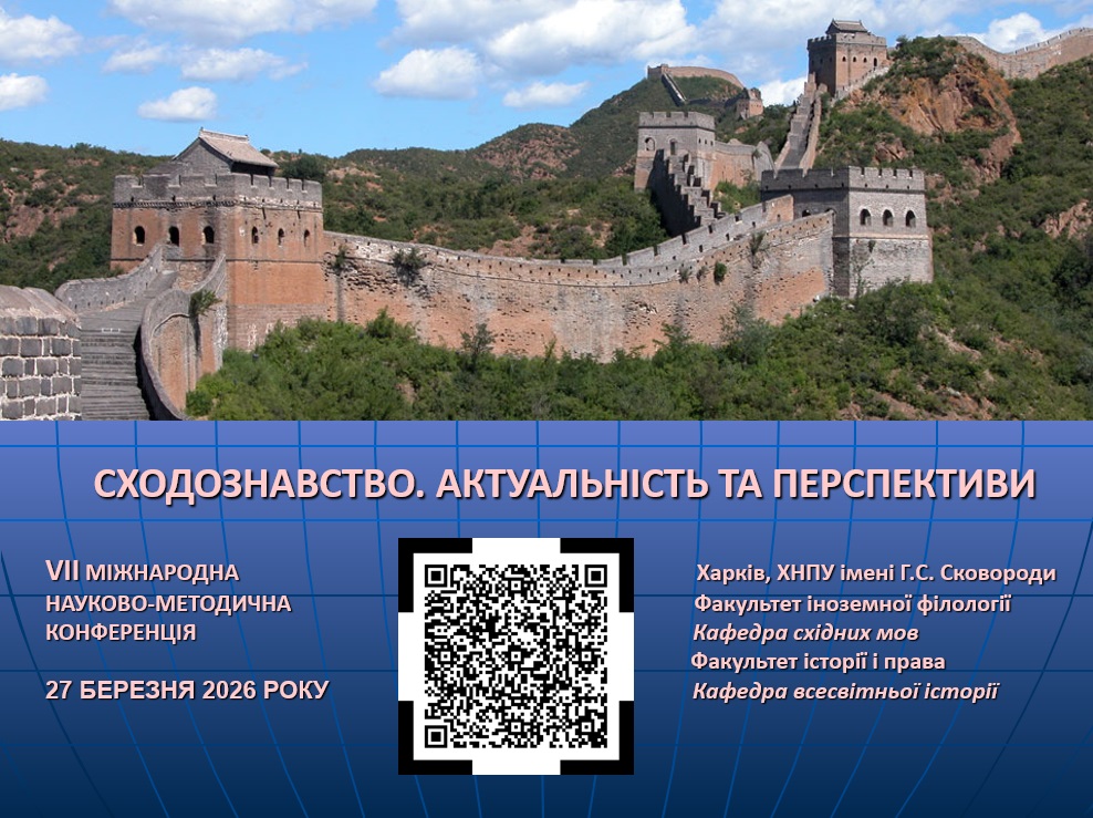 27 березня 2026 р. на базі факультету іноземної філології (кафедра східних мов) та факультету історії і права (кафедра всесвітньої історії) Харківського національного педагогічного університету імені Г.С. Сковороди відбулася VІІ Міжнародна науково-методична конференція «СХОДОЗНАВСТВО. АКТУАЛЬНІСТЬ ТА ПЕРСПЕКТИВИ» (заочна форма проведення). Співорганізаторами виступили Київський столичний університет імені Бориса Грінченка (факультет східних мов), Газіантепський університет (Туреччина), Center for Promotion of Internationalization, University of Yamanashi (Японія), Телавський державний університет імені Якоба Гогебашвілі (Грузія), Alterbridge International University of Management and Communication (Грузія), Університет імені Дев’ятого вересня (факультет образотворчих мистецтв) (Туреччина), Digital School «P2P Communication» (Литва), Хейлунцзянський університет (КНР).