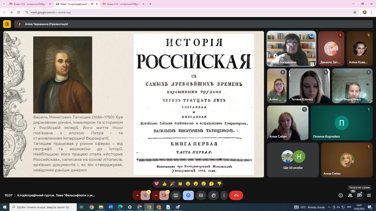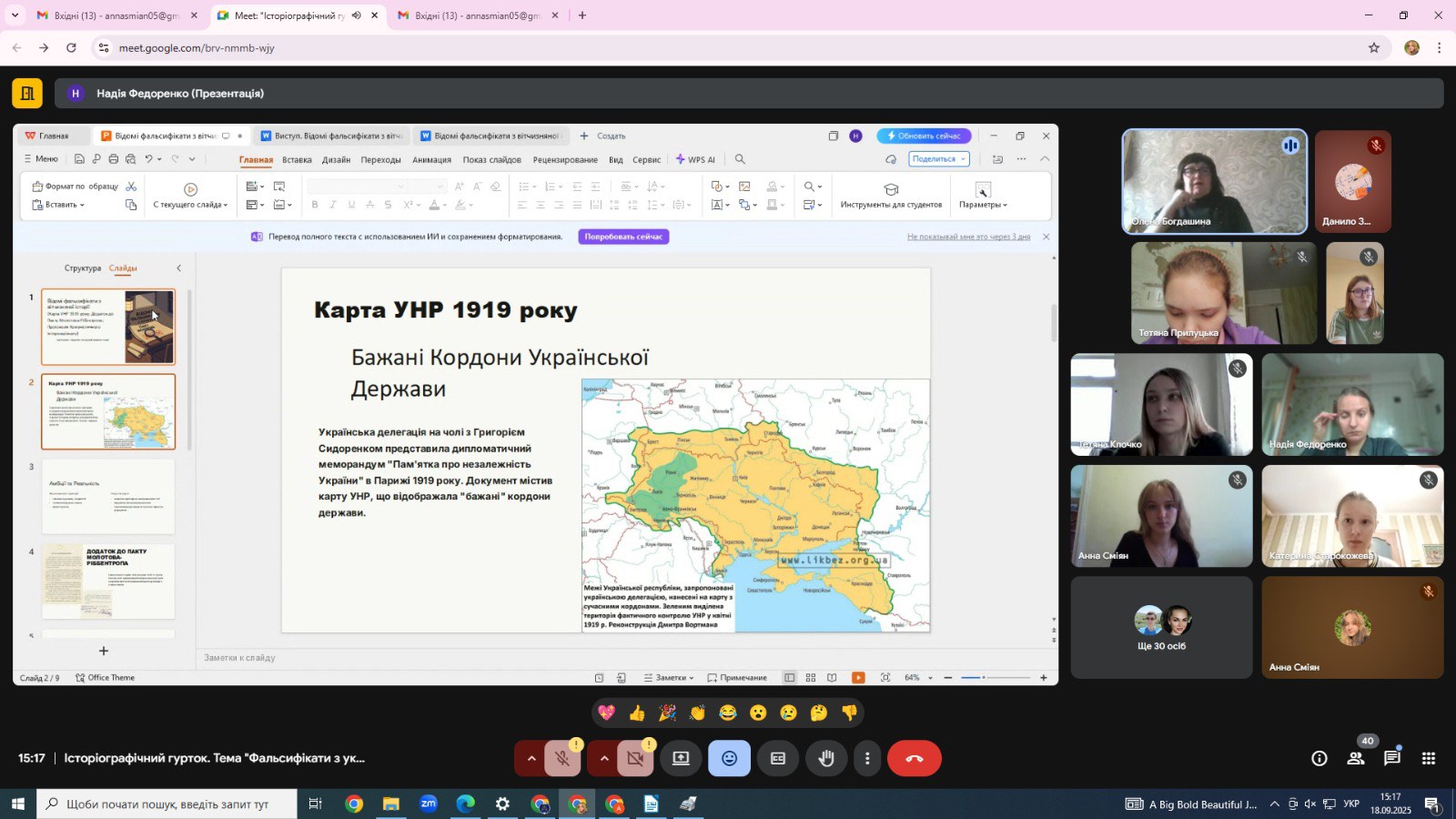 17 вересня 2025 р. під керівництвом доктора історичних наук, професора, професора кафедри історії України, гаранта ОНП В9 «Історія та археологія» Олени Миколаївни Богдашиної відбулось чергове засідання історіографічного гуртка для студентів та аспірантів.