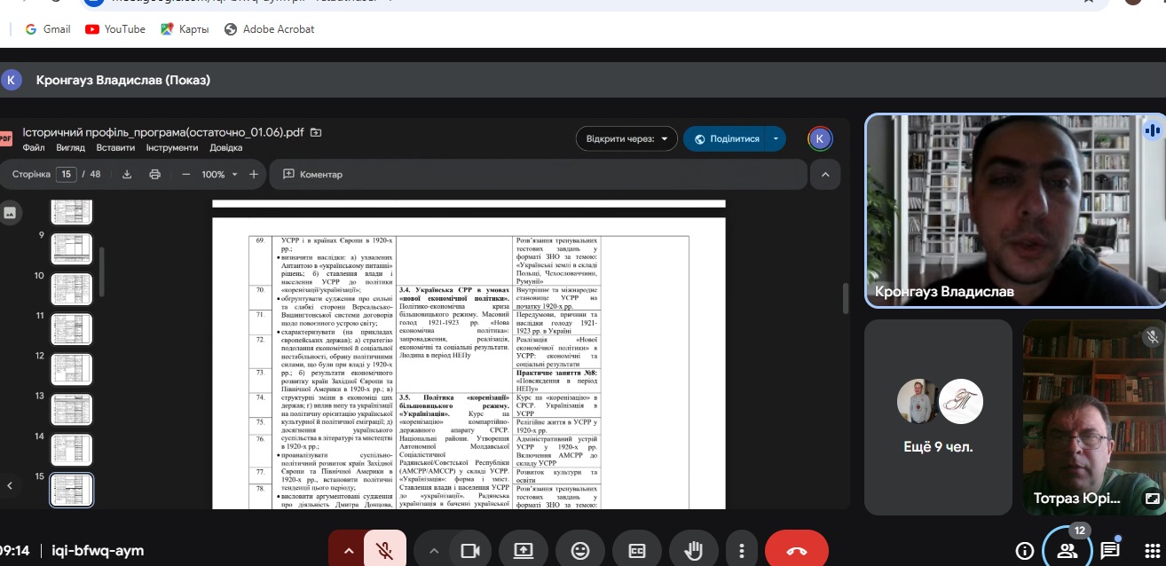 Чергове засідання робочої групи освітньо-наукової програми підготовки докторів філософії за спеціальністю В9 Історія та археологія: плани на майбутнє