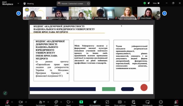 У рамках виконання заходів щодо впровадження академічної доброчесності ЗВО викладачі кафедри 12 березня 2026 року відвідали онлайн-зустрічі «Доброчесність у закладах вищої освіти: практики та досвід», організований Офісом доброчесності НАЗК.