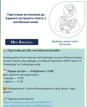 Заняття з англійської мови для абітурієнтів у Сковорода-хабі