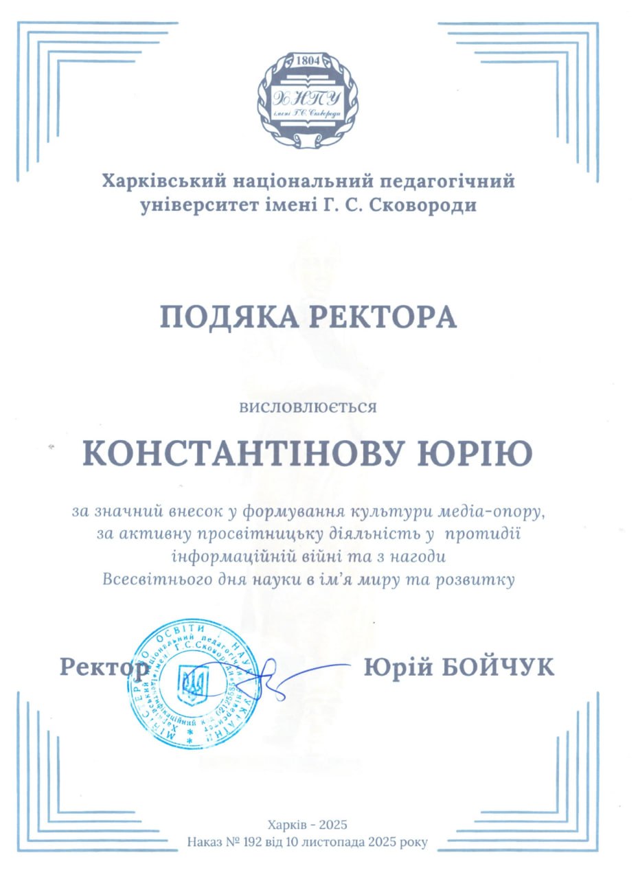 22 травня 2025 року відбулася ІІІ ВСЕУКРАЇНСЬКА НАУКОВО-ПРАКТИЧНА КОНФЕРЕНЦІЯ «КОМУНІКАЦІЙНИЙ ПРОСТІР ПОСТІНФОРМАЦІЙНОГО СУСПІЛЬСТВА: ГУМАНІТАРИСТИКА ПЕРЕД ВИКЛИКАМИ ВОЄННОГО ЧАСУ», організатором якої є Київський університет інтелектуальної власності та права, одним із співорганізаторів виступає Харківський національний педагогічний університет імені Г.С. Сковороди.