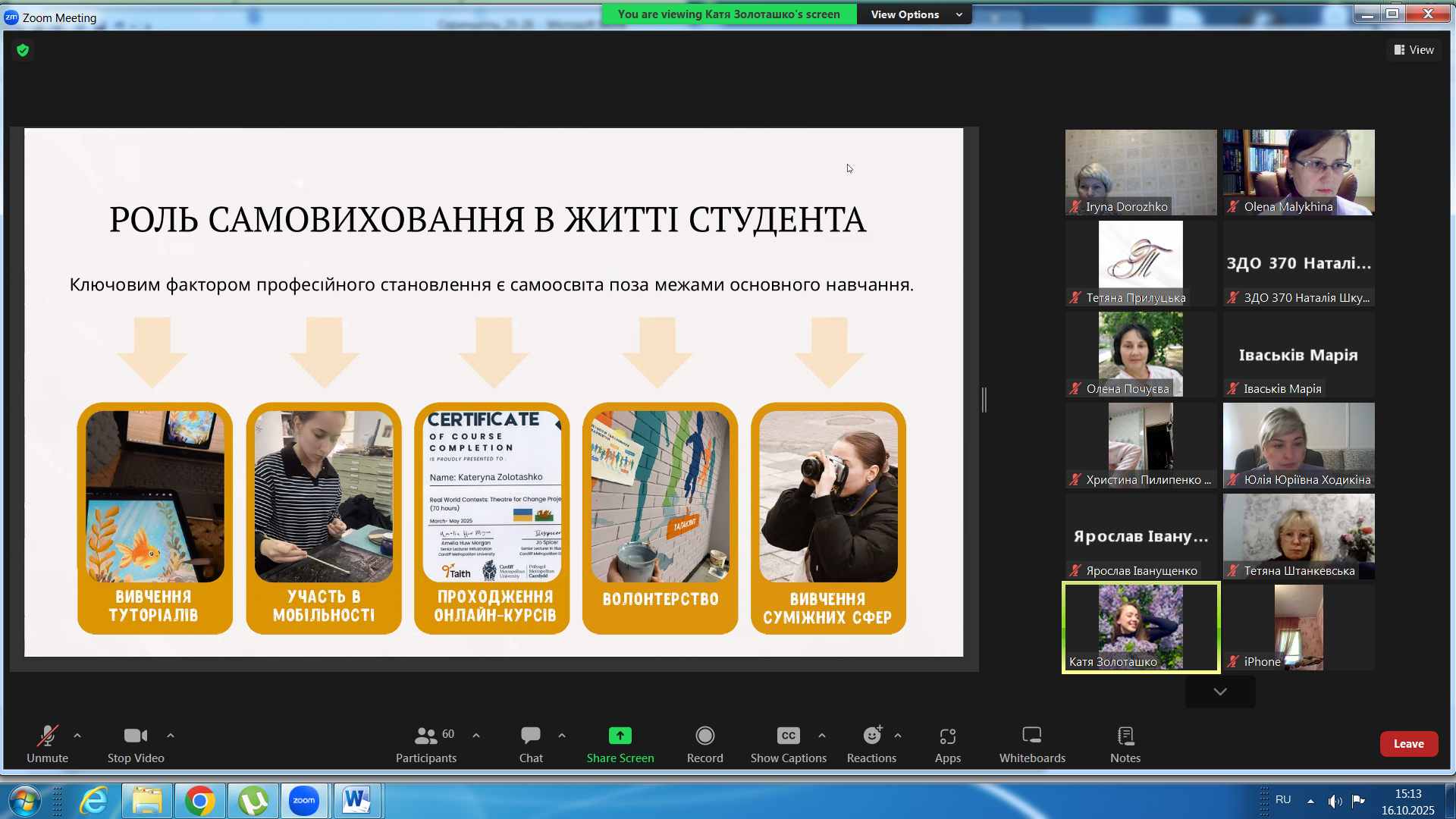 Здобувачі факультету Дошкільної освіти виконували практичні завдання – створювали перелік відкритих питань до серії мультфільмів, пропонували девізи для персонажів-іграшок. Під час рефлексії учасники підкреслили, що навіть у дистанційному форматі взаємодія виявилася цікавою і продуктивною!