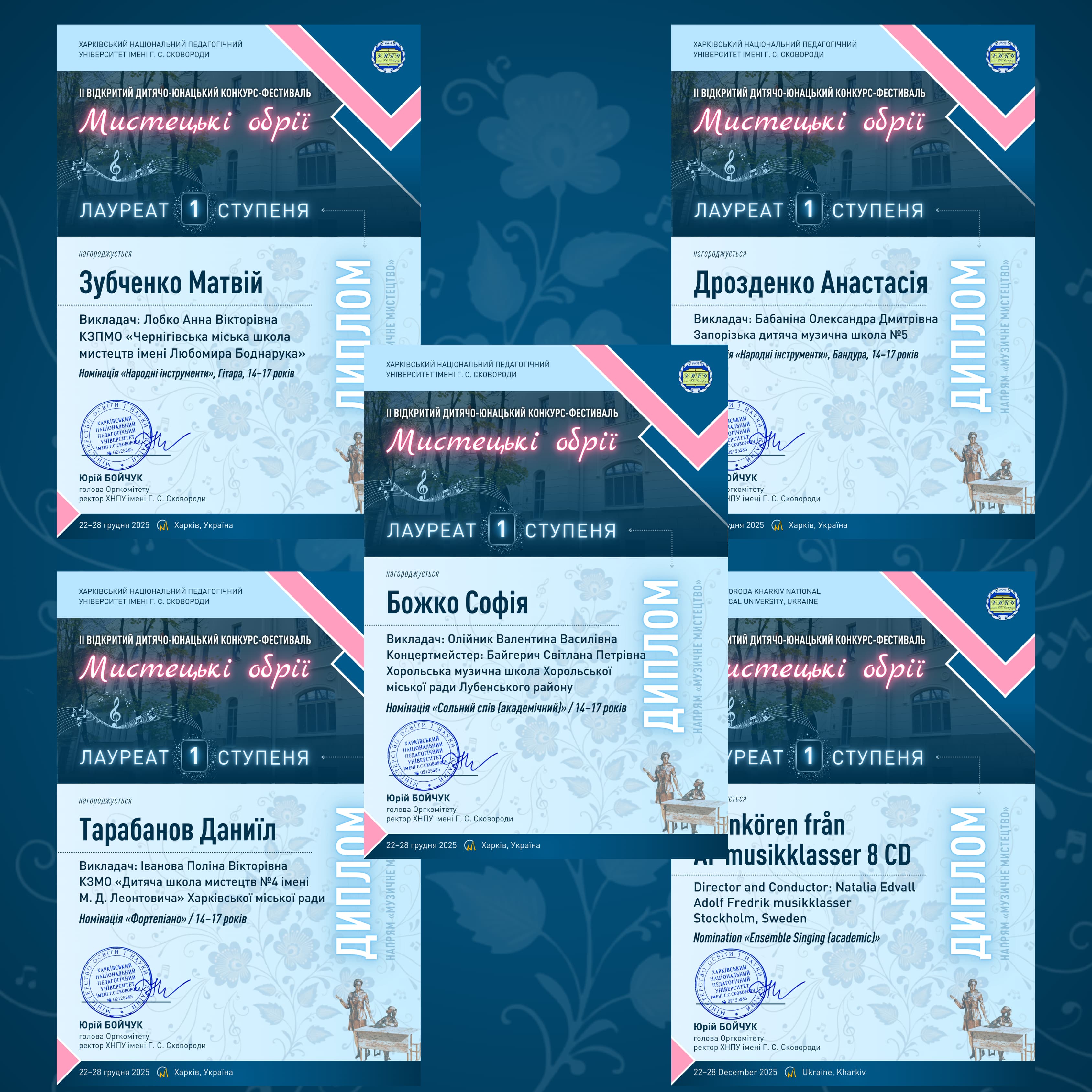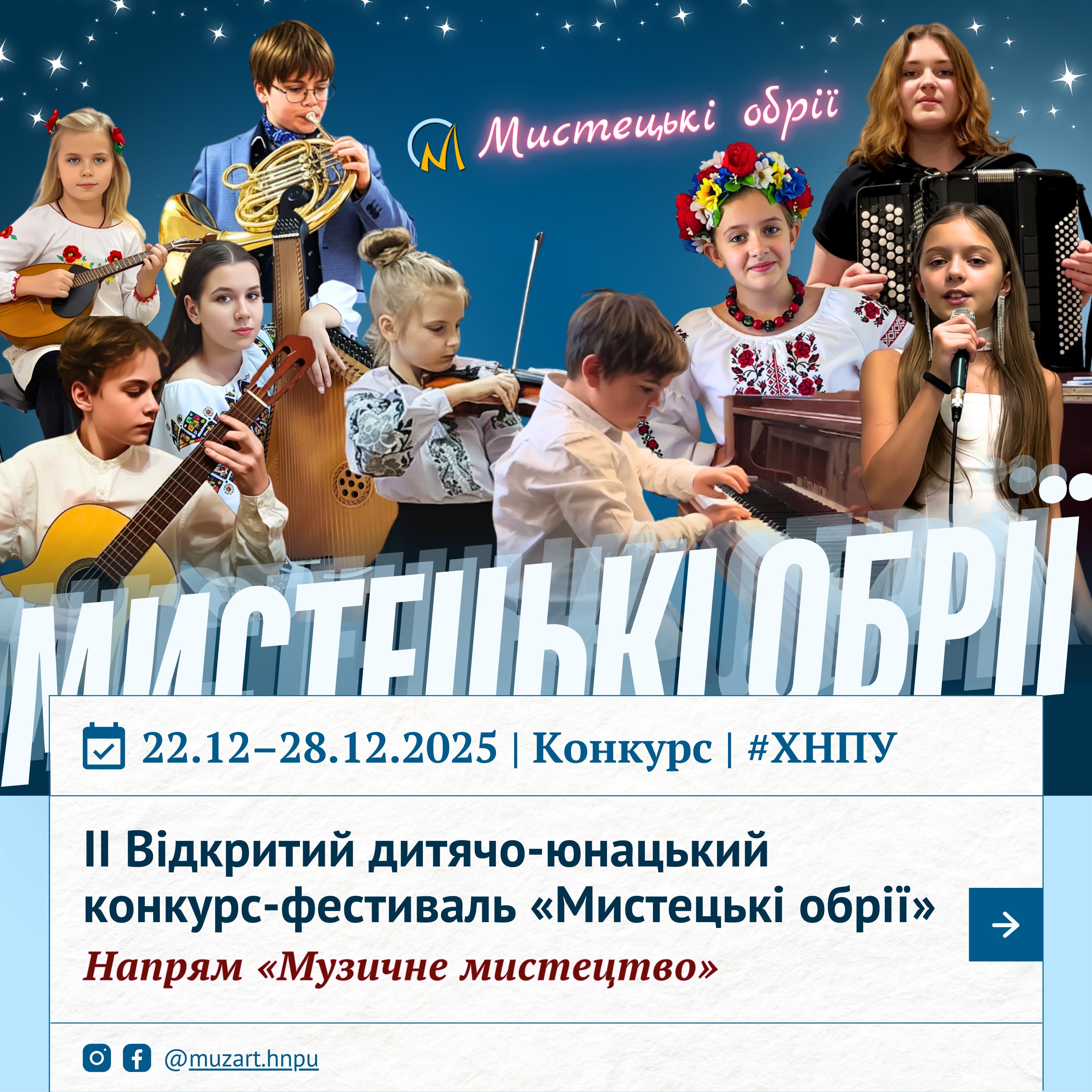 З 22 по 28 грудня 2025 р. у дистанційному форматі проходив ІІ Відкритий всеукраїнський дитячо-юнацький конкурс-фестиваль «Мистецькі обрії», засновником якого є Харківський національний педагогічний університет імені Г. С. Сковороди.