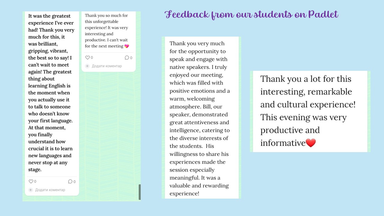 Учні та їхні вчителі були зацікавлені темою й форматом проведення зустрічі, подякували за креативний захід і подарунки, що стали приємним сюрпризом.