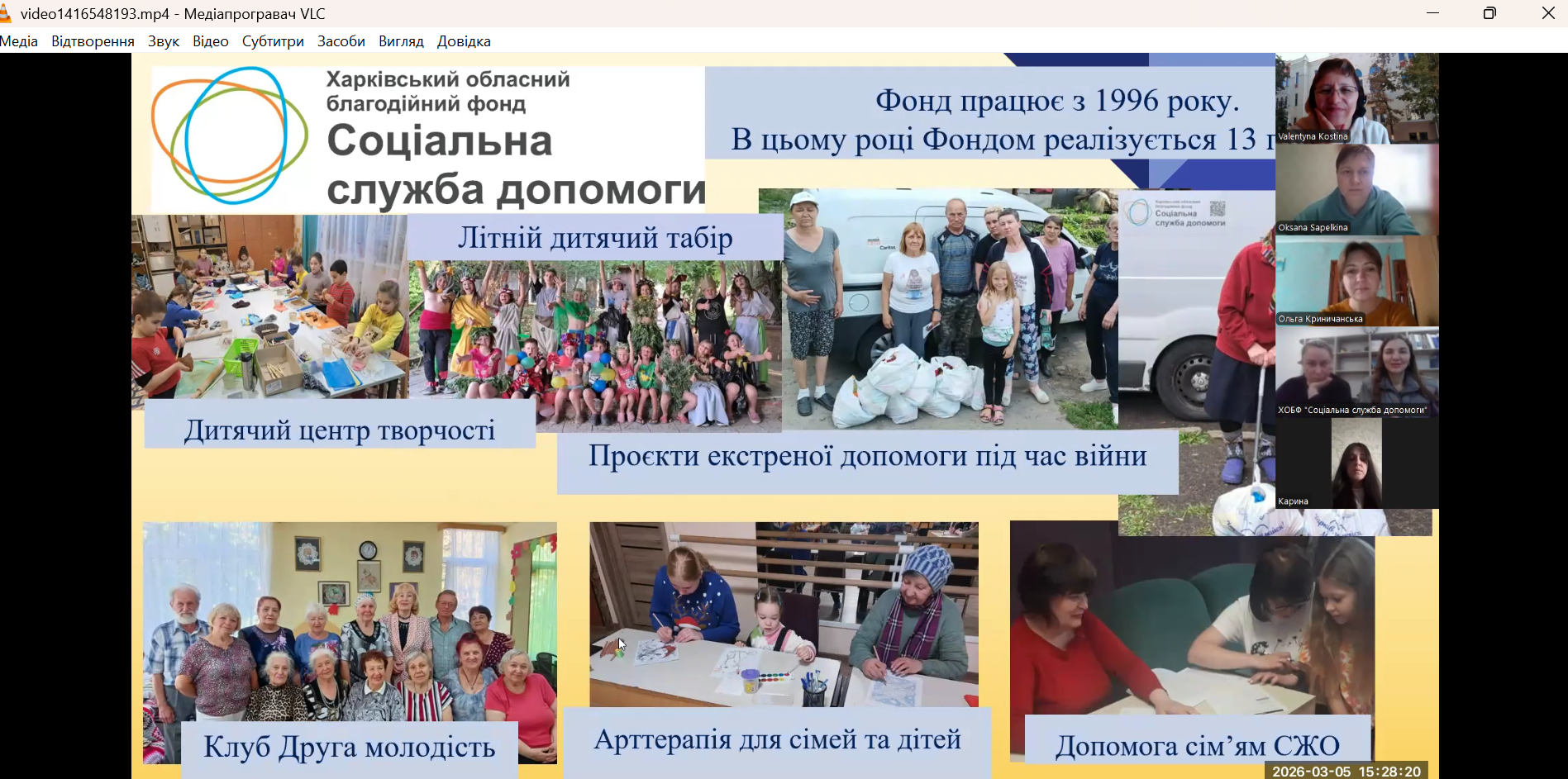 5 березня 2026 року менеджерками у соціальній сфері, керівницями благодійних проєктів напряму догляду вдома та паліативного догляду Щербаковою Вікторією Ігорівною та Гавриш Аліною Вікторівною проведено відкрите проведено практико-зорієнтоване заняття на базі ХОБФ «Соціальна служба допомоги» з освітнього компонента «Опіка і піклування з практикумом» на тему: «Практичні аспекти здійснення соціальної роботи з людьми літнього віку та з невиліковно хворими особами, що потребують опіки та піклування» для здобувачів першого (бакалаврського) рівня вищої освіти заочного відділення спеціальності 231 «Соціальна робота» у форматі Zoom.