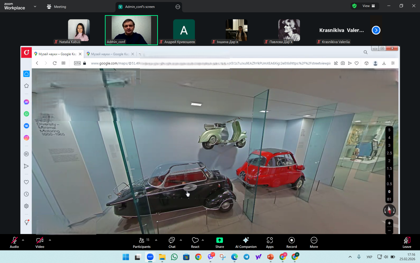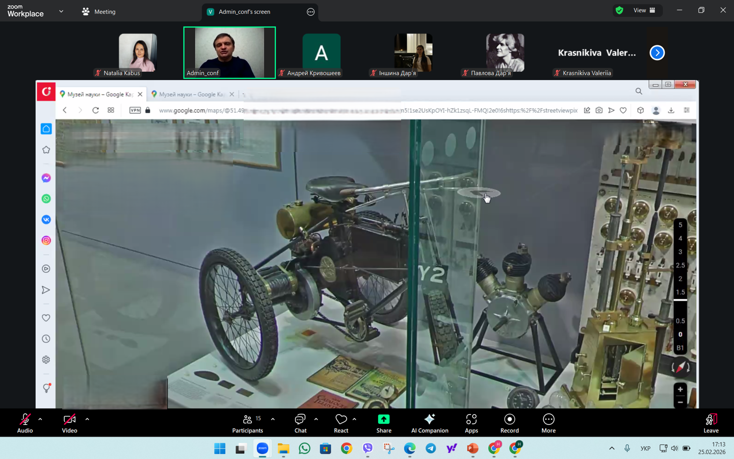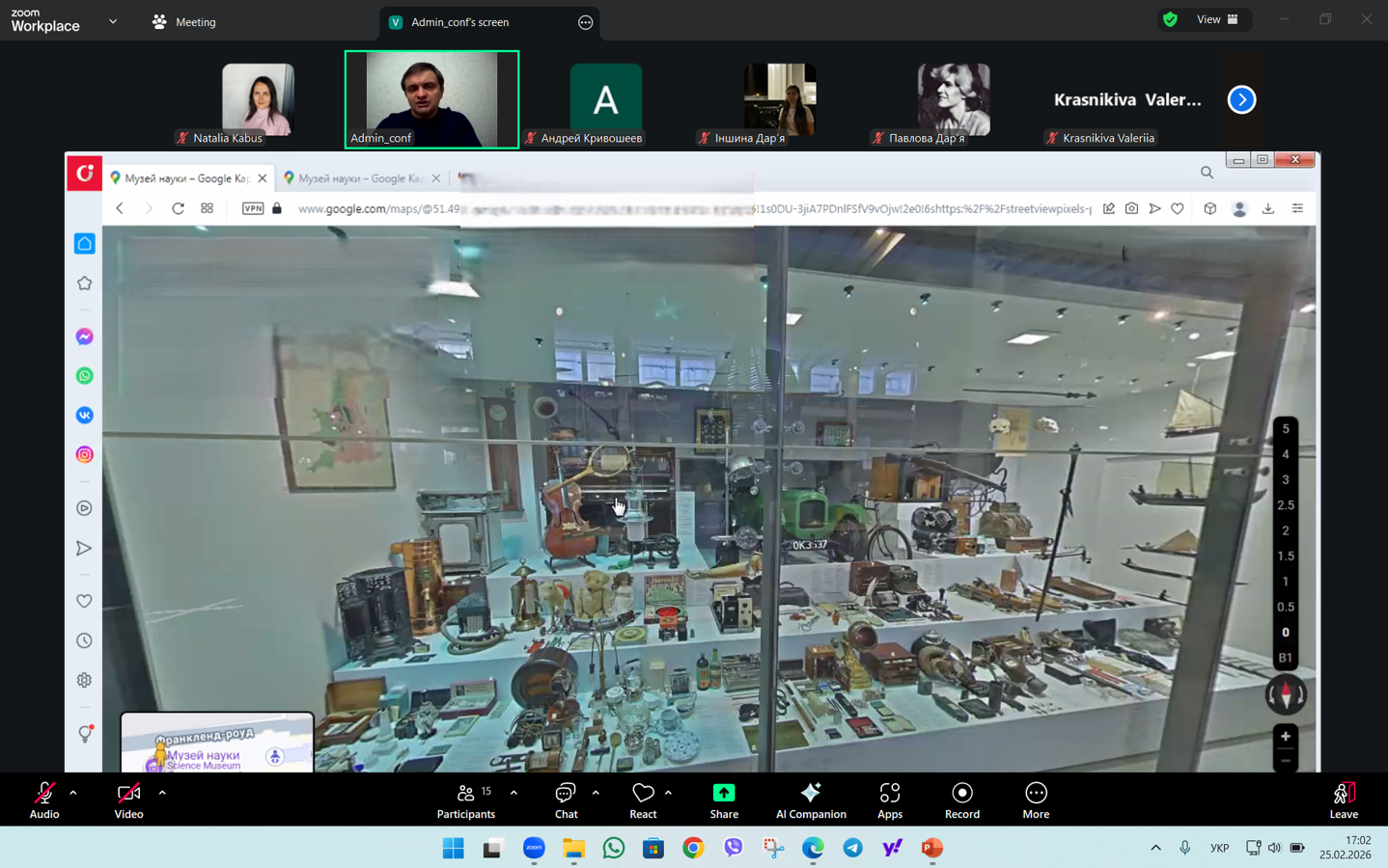 25 лютого 2026 р. здобувачі спеціальностей І10 Соціальна робота та консультування й 231 Соціальна робота та науково-педагогічні працівники кафедри соціальної роботи і соціальної педагогіки долучились до віртуальної подорожі до Лондонського музею науки (Science Museum), організованої Музейним комплексом Харківського національного педагогічного університету імені Г.С.Сковороди в межах проєкту «Наукові та природничі музеї світу online».