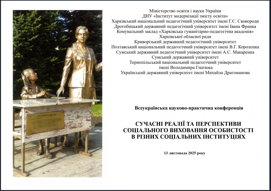 Всеукраїнська науково-практична конференція «СУЧАСНІ РЕАЛІЇ ТА ПЕРСПЕКТИВИ СОЦІАЛЬНОГО ВИХОВАННЯ ОСОБИСТОСТІ В РІЗНИХ СОЦІАЛЬНИХ ІНСТИТУЦІЯХ»