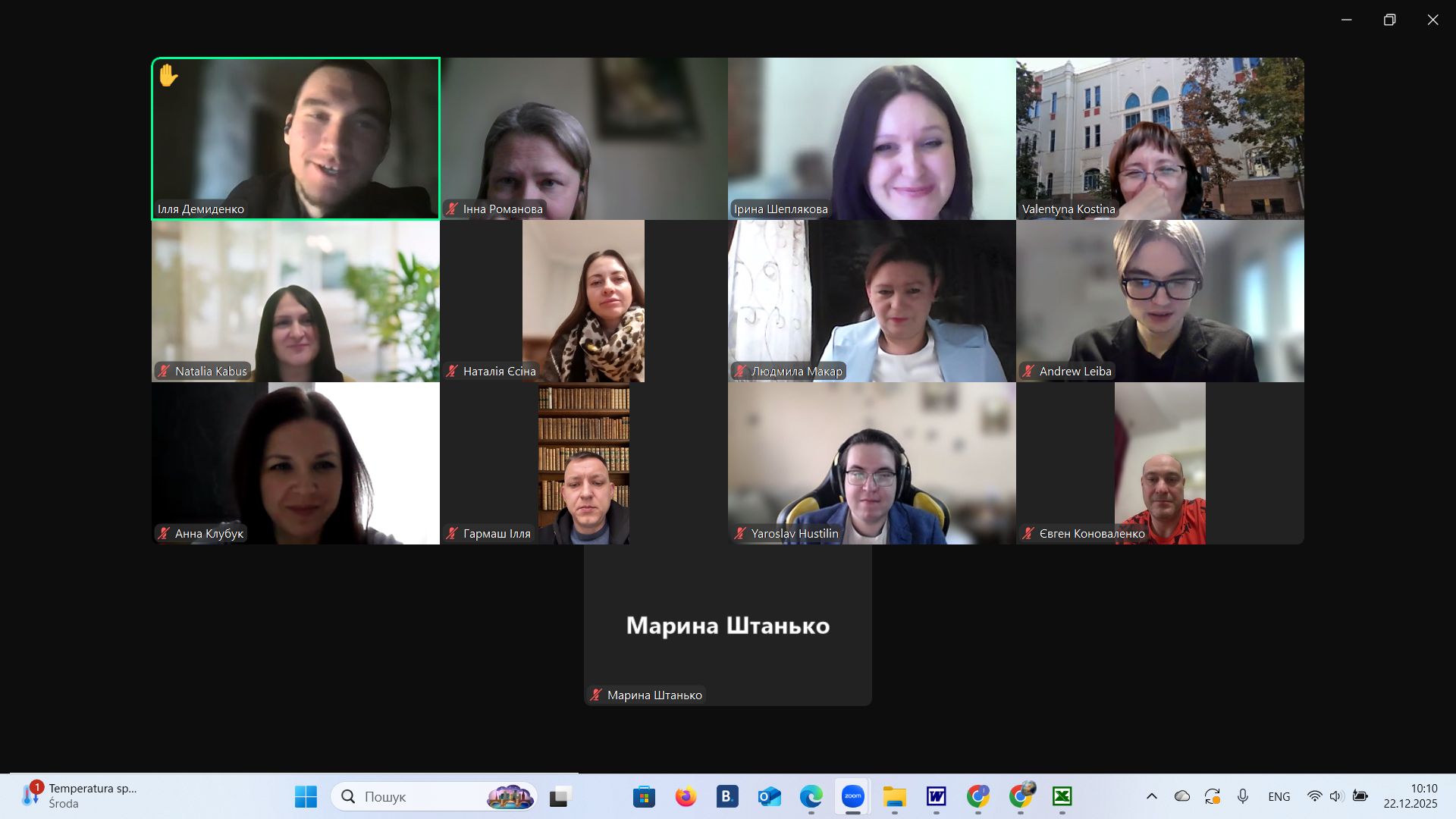16.12.2025 р. науково-педагогічні працівники кафедри соціальної роботи і соціальної педагогіки й здобувачі спеціальностей І10 Соціальна робота та консультування і 231 Соціальна робота взяли участь у серії Всеукраїнських вебінарів «СОЦІАЛЬНА РОБОТА БЕЗ КОРДОНІВ: ІННОВАЦІЇ, ТРЕНДИ, ДОСВІД».