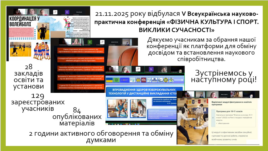 12 березня 2021 року на базі Уманського державного педагогічного університету імені Павла Тичини відбулася ІІ Міжнародна науково-практична Інтернет конференція «Фізична культура дітей, підлітків,молоді та дорослого населення в сучасному світі».