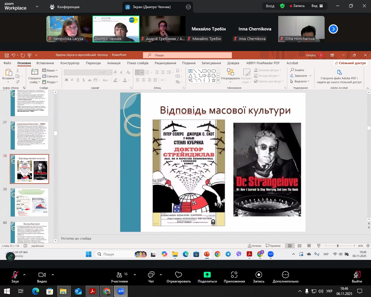 13 грудня 2025 р. на факультеті історії і права Лариса Ямпольська, кандидат історичних наук, доцент, завідувач кафедри всесвітньої історії, гарант ОП «Історія в закладах освіти» другого (магістерського) рівня спеціальності 014.03 Середня освіта (Історія та громадянська освіта) провела фінальну консультацію щодо захисту випускних кваліфікаційних робіт здобувачами денної і заочної форм навчання та оцінки ефективності ОП здобувачами освіти. Відповідно до «Положення про кваліфікаційну роботу здобувачів першого (бакалаврського) і другого (магістерського) рівнів вищої освіти ХНПУ імені Г.С. Сковороди», зроблені акценти на підготовці документації, процедурі захисту, критеріях оцінювання випускної роботи магістра. Розглянуто, як правильно побудувати виступ на захисті, створити презентацію, дати відповіді на запитання членів кваліфікаційної комісії та аудиторії.
