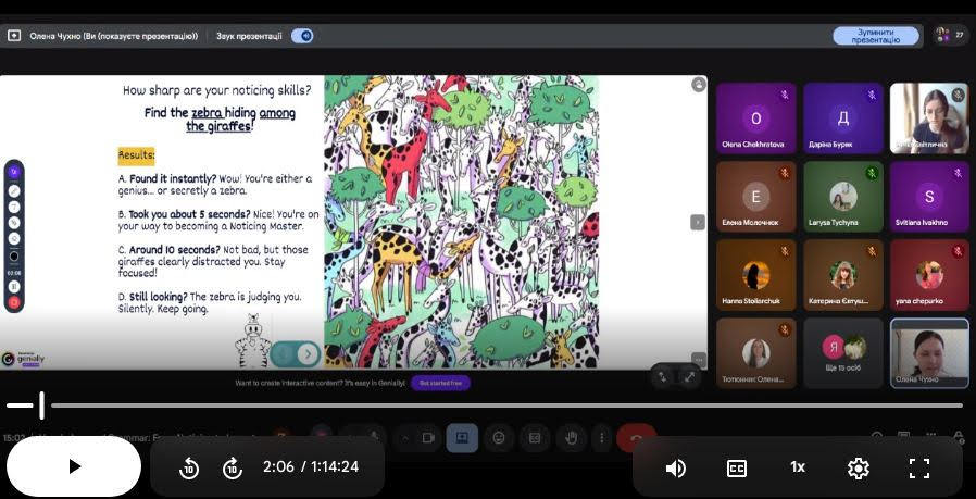 Загалом до участі в серії вебінарів долучилися 37 учасників - учителі та викладачі англійської мови, а також здобувачі вищої освіти, які зацікавлені у впровадженні сучасних методик у власній педагогічній практиці.