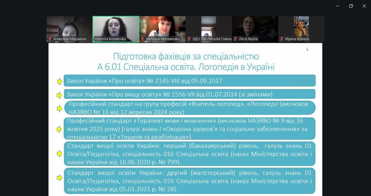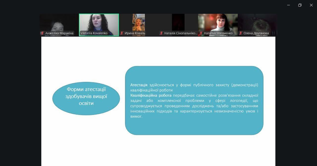 У ході фахової дискусії Вікторія Коваленко акцентувала увагу на необхідності осучаснення назв освітніх компонентів відповідно до чинних та оновлених нормативно-правових документів, сучасної наукової термінології та професійних стандартів у сфері логопедії.