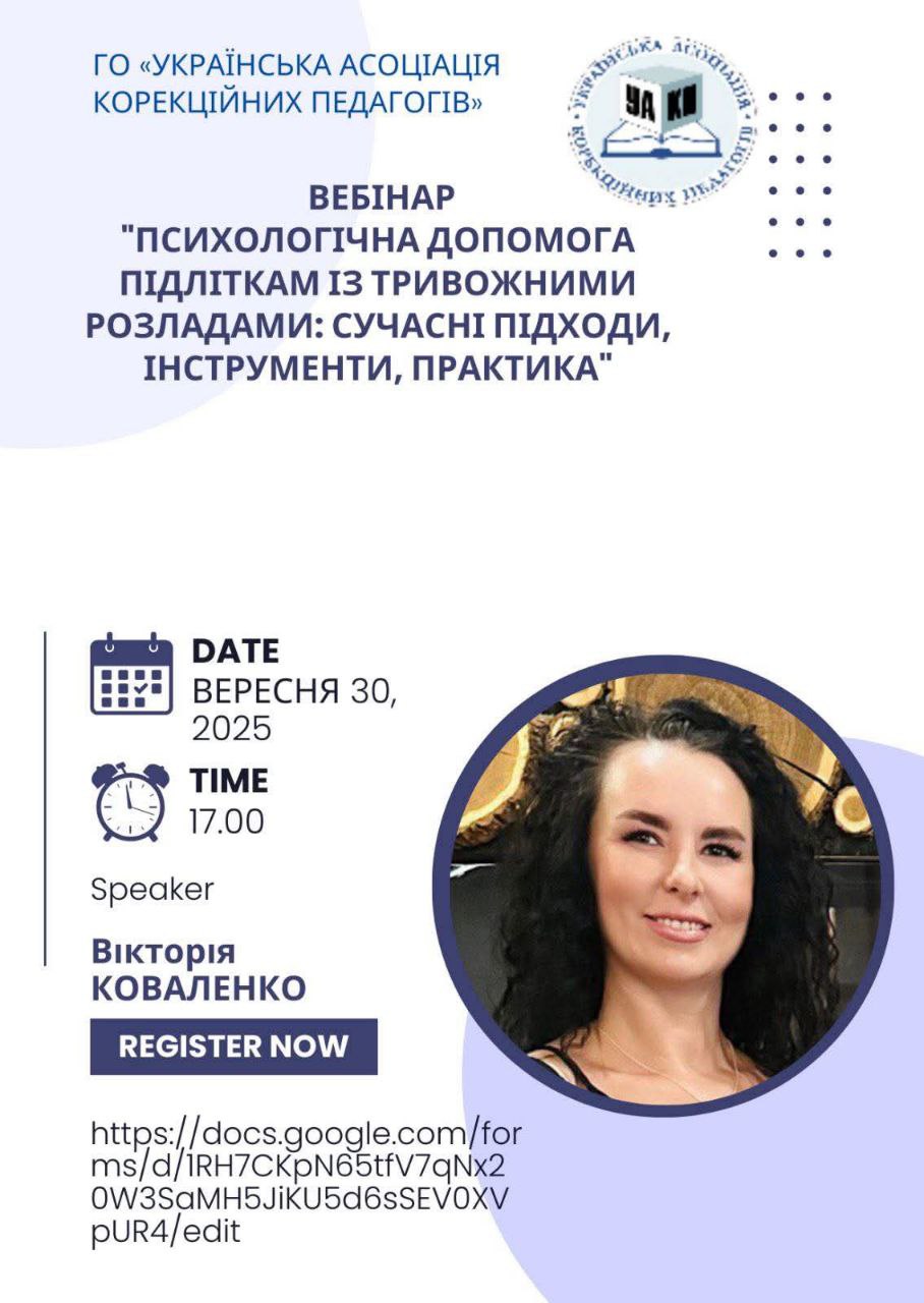 30 вересня 2025 року відбувся перший вебінар із циклу професійних заходів — «Психологічна допомога підліткам із тривожними розладами: сучасні підходи, інструменти, практика».