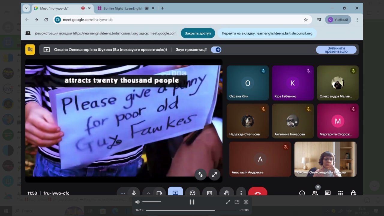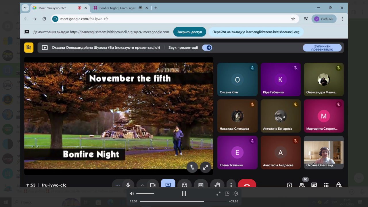 Під час зустрічі учні отримали детальну інформацію про Харківський національний педагогічний університет імені Г.С. Сковороди, його структуру, умови вступу, освітні програми та переваги навчання. Особливу увагу було приділено факультету іноземної філології, його спеціальностям, можливостям академічної мобільності, а також перспективам працевлаштування випускників. Також з нагоди святкування Ночі Гая Фокса (Guy Fawkes Night), великого традиційного свята у Великій Британії, що припадає на 5 листопада, учні мали можливість подивитися невеличке інформативне відео, після перегляду якого відбулося обговорення історичних подій, пов’язаних зі святом.