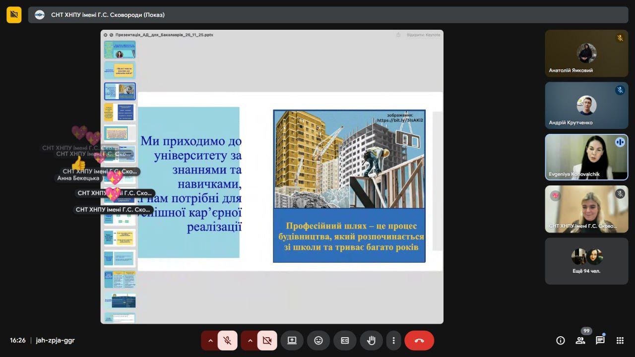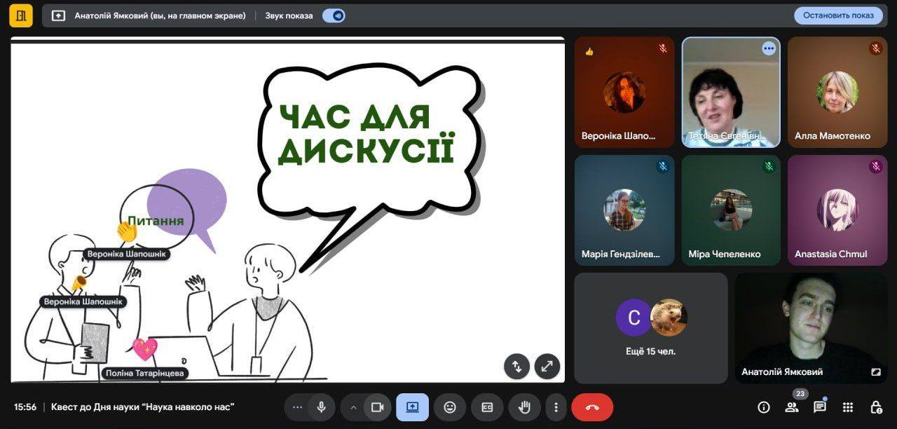 14.11.25 року відбулася онлайн-зустріч, присвячена оголошенню результатів reels-конкурсу «Науковий Tik-Tok». Подія пройшла в атмосфері драйву, творчості й натхнення, а всі члени журі виступили з привітальними словами, підкресливши важливість популяризації науки у сучасних форматах.