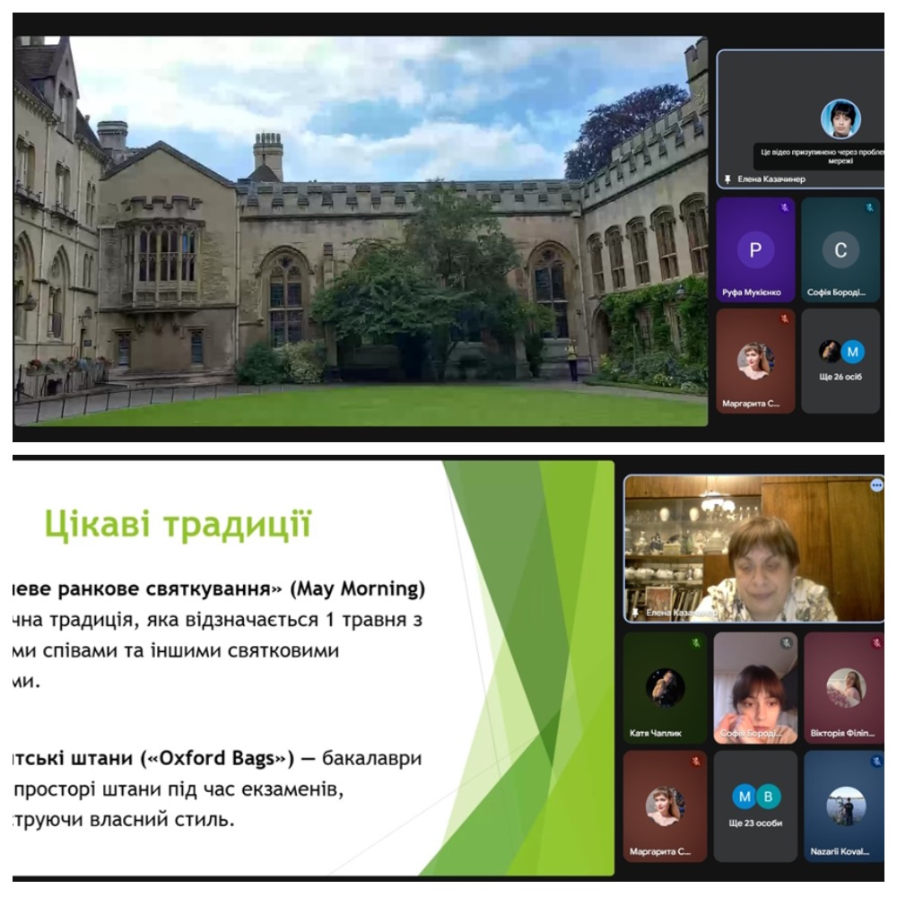 21 листопада 2025 р. д. пед. н., професор Олена Семенівна Казачінер провела загальнофакультетський захід – віртуальну подорож до одного з найвідоміших університетських міст світу – Оксфорда. До речі, до заходу доєдналися здобувачі фізико-математичного факультету нашого університету.