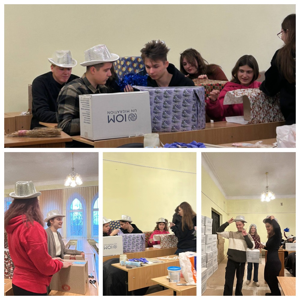 Студенти займалися формуванням святкових елементів, зокрема збирали та оформлювали подарункові коробки, які стали яскравою частиною святкових інсталяцій. Активно допомагали у їхньому розміщенні, докладаючи максимум зусиль, щоб кожен куточок засяяв новорічним світлом!