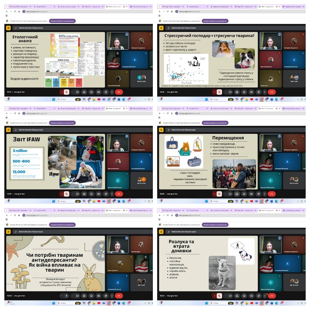 Мартинова Вероніка — «Як домашні тварини спілкуються з людиною через поведінку». Учасники дізналися про сигнали та поведінкові прояви, за допомогою яких тварини передають свої емоції та потреби.