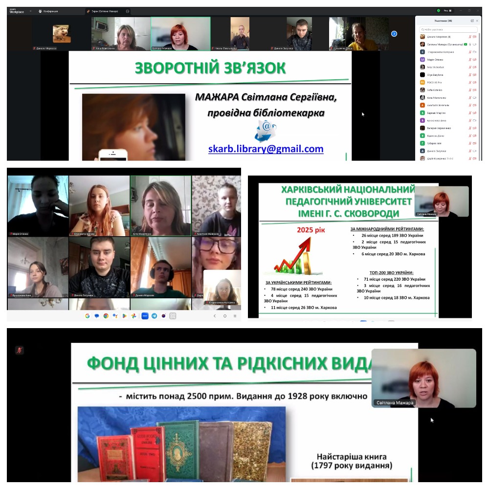 Співробітниця Наукової бібліотеки ХНПУ імені Г.С. Сковороди Світлана МАЖАРА провела змістовну онлайн-екскурсію та розповіла про сучасні можливості: