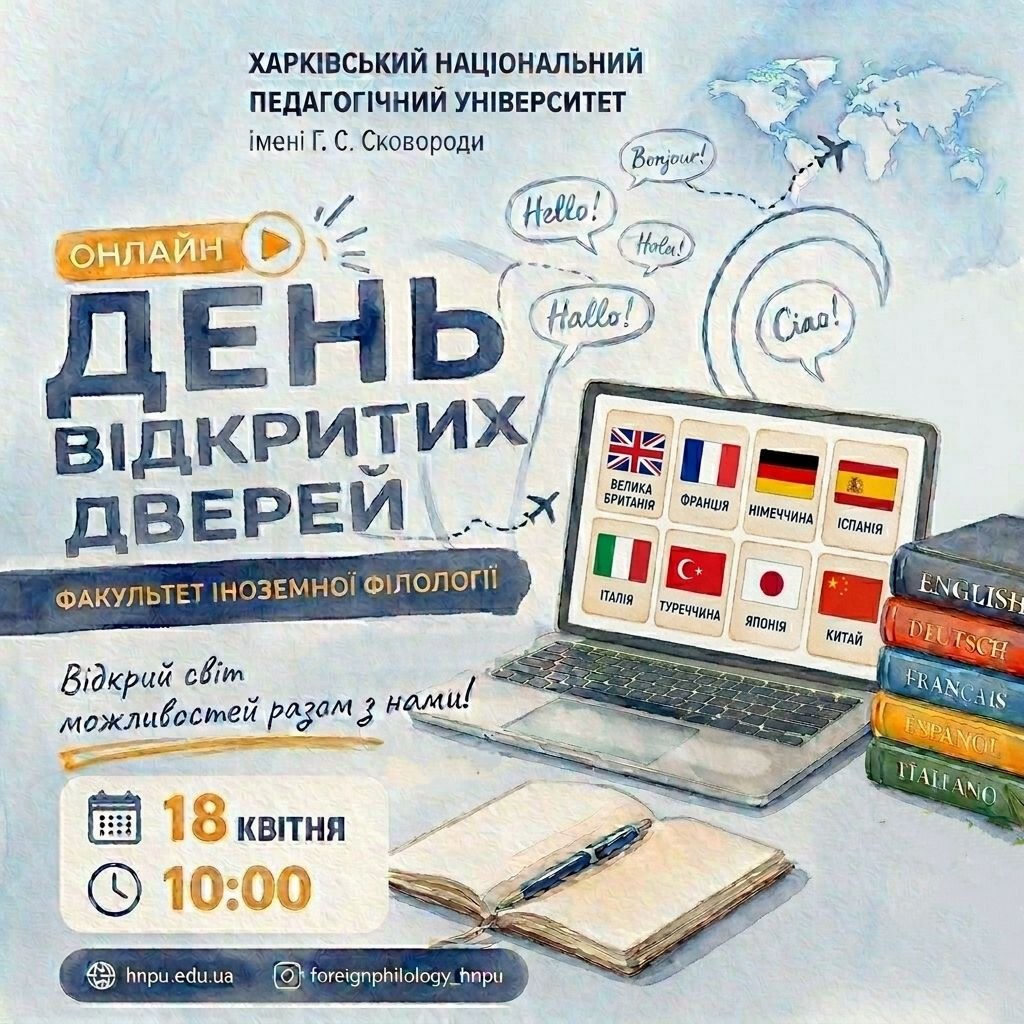 Факультет Іноземної філології запрошує на онлайн День відкритих дверей 18 квітня о 10:00